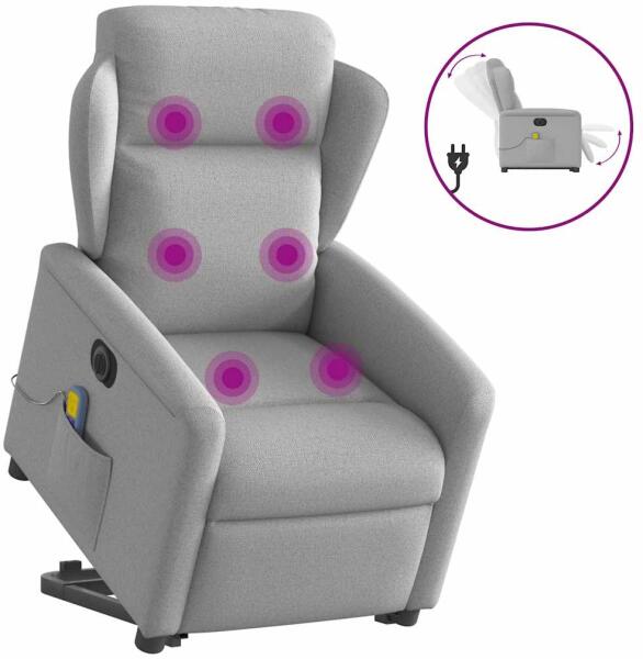 Dőljön hátra, és engedje el magát ebben a rendkívül kényelmes, elektromos felállást segítő masszázsfotelben! Erős emelőfunkció: Ez az idősek számára készült dönthető fotel elektromos motorral rendelkezik az emelőfunkcióhoz. A funkciónak köszönhetően, amely az egész fotelt felfelé tolja, könnyedén állhat fel anélkül, hogy megterhelné a hátát és a térdét. El