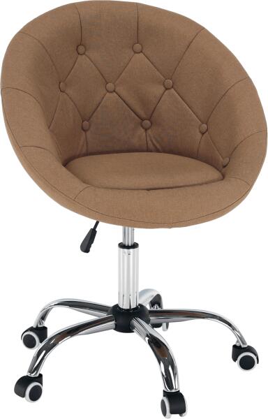 Anyag: szövet/fém A szövet kopásállósága: 80 000 Martindale Szín: világosbarna/króm Méretek: (SzéxMéxMa): 64x54,5x82-94 cm Ülésmagasság: 45-57 cm Ülésmélység: 42 cm Ülésszélesség: 36 cm Háttámla magassága: 37 cm Háttámla szélessége: 64 cm Teherbírás: 100 kg Puha ülőrésszel Forgó Varrott háttámlával Állítható ülésmagasság Univerzális kerekek puha és k
