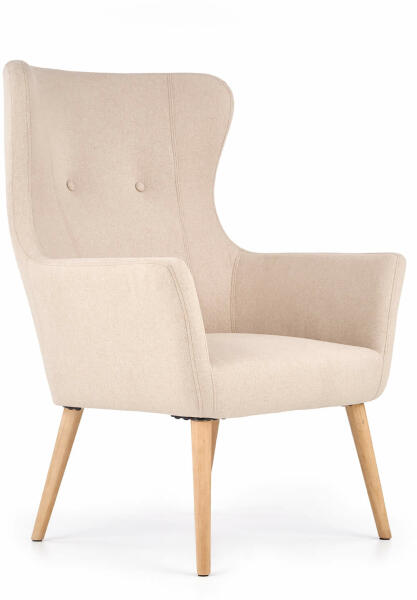 A bézs színben kapható COTTO fotel magas háttámlával rendelkezik, ezért a modern otthonok berendezésének kiegészítésére ideális választás. A puha, ugyanakkor tartós szövetkárpitozásnak köszönhetően garantált a maximális komfortérzet a fotelben ülve akár a kedvenc regényét olvassa, akár filmet néz. A COTTO füles fotel natúr tömörfa lábakkal és kényelmes karfá