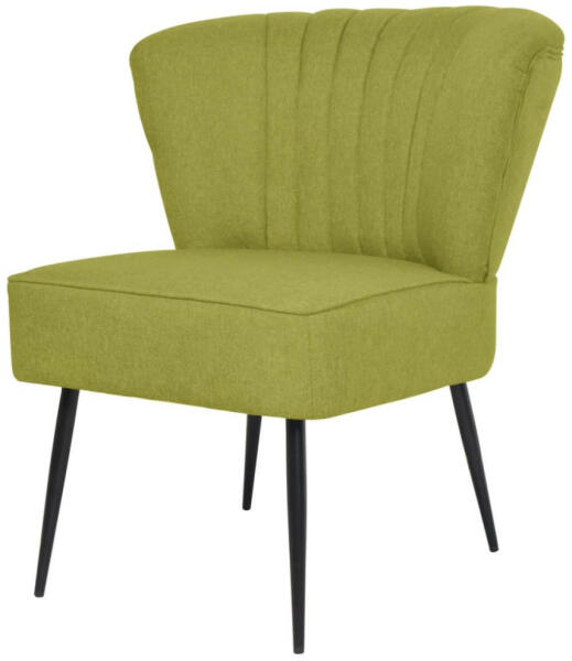 Színe: zöld Anyaga: szövet kárpitozás + habtömés + fa váz + acél lábak Mérete: 64 x 73 x 81 cm (Szé x Mé x Ma) Ülőfelület szélessége: 52 cm Ülőfelület mélysége: 51 cm Ülőfelület magassága a talajtól: 45 cm Ülőfelület vastagsága: 15 cm Háttámla magassága: 39 cm Láb magassága: 28 cm Anyag: Poliészter: 100%