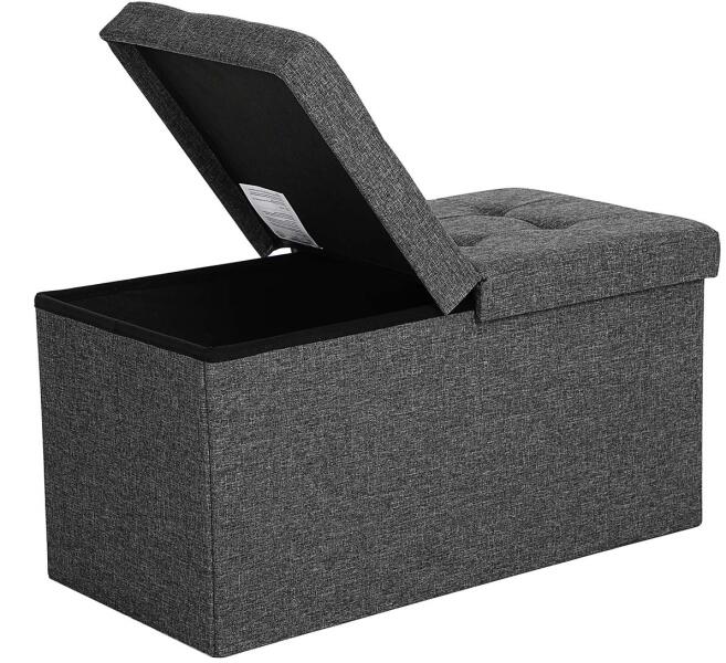 Az OTTOMAN taburett elegáns sötétszürke színben , csukható fedéllel praktikus és stílusos kiegészítője bármely belső térnek. Ez a többfunkciós bútor nemcsak kényelmes ülőhelyet kínál, hanem a fedél alatti tárolóhelyet is, amely ideális kisebb tárgyak, például takarók, magazinok vagy játékok tárolására. A fedél mindkét oldalról nyitható , ami megkönnyíti a