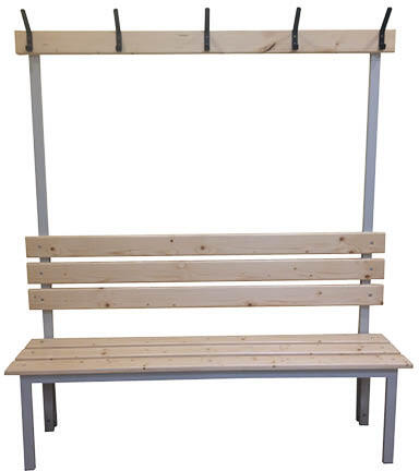 Méret: 1650 x 1200 x 350 mm. Rendkívül masszív, szinterezett acél zártszelvény váz műanyag kopótalpakkal, 18-20 mm vastag lakkozott fenyőléc ülőlapokkal, háttámlával és akasztós fejrésszel. A szélességhez igazodó dupla akasztókkal. A váz 40x20x2 mm zártszelvényből készül fi x hegesztett kivitelben. A váz szinterezett (porszórt) bevonattal készül. 1500 mm-ig 4 láb