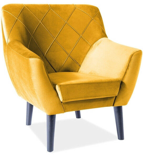 Elegáns kényelem skandináv stílusban A Kier Velvet fotel a modern design és a klasszikus kényelem tökéletes ötvözete. A curry színű bársony kárpitozás és a wenge színű fa lábak harmonikus kontrasztot alkotnak. A háttámlán látható rombusz mintázatú varrás különleges karaktert kölcsönöz a bútornak. A fotel 76 cm széles és 90 cm magas, ideális méretekkel rendelkez