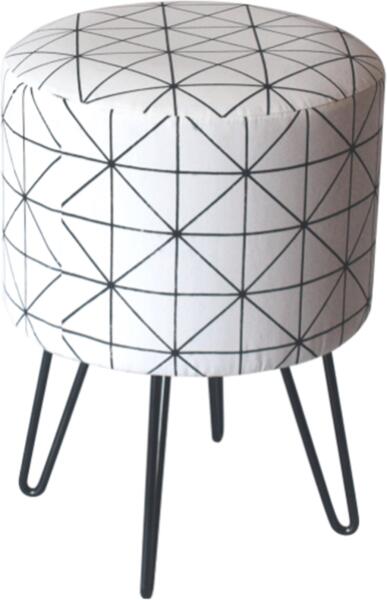 Nappali bútor > Ülőkék és babszákok > Ülőke, fehér anyag, fekete nyomtatással, LANA LANA ülőke fém lábakkal Anyag: szövet / fém A szövet kopásállósága: 95 000 Martindale Szín: fehér, fekete mintával Méretek (SzéxMéxMa): 30x30x38 cm Teherbírás: 80 kg