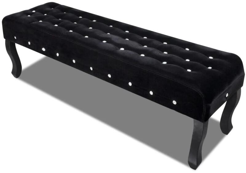 VIX TÁROLÓ LÁDA / PAD, FEKETEEz az elegáns pad, intarziás csillogó kristály gombok, ideális választás lakása belsejébe, a hálószobába, társalgóba és nappaliba. Ez minden bizonnyal létrehoz egy nyugodt, kellemes királyi hangulatot életterébe. A kiváló minőségű fából készült lábak a padon stabil és tartós. A puha bársony szövet nagyon kényelmes. Szín: Fekete Any