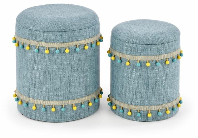 Grado zsámolykészlet 2 praktikus és stílusos zsámolykészlet gyönyörűen kiegészíti a gyerekszobák belső terét , nappalikba, irodákba vagy például akár az előszobába is. A székek nagyon kellemes anyaggal vannak kárpitozva. A zsámolyok által biztosított tárolóhely a dolgok elrejtésére szolgál. Mindkét végén díszes szegély található. A kisebbik zsámoly mérete 30