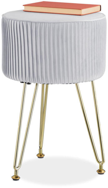 Bársony ülőke elegáns kivitelben Az arany hajtűs lábakkal ellátott bársony zsámoly luxust és eleganciát kölcsönöz minden helyiségnek. A bársony zsámoly ugyanúgy figyelemfelkeltő, dekoratív a szobában, mint klasszikus zsámoly a fésülködőasztal előtt vagy oldalszék a kanapé mellett. A párnázott ülés kényelmes ülésélményt biztosít. Az állítható lábaknak kös