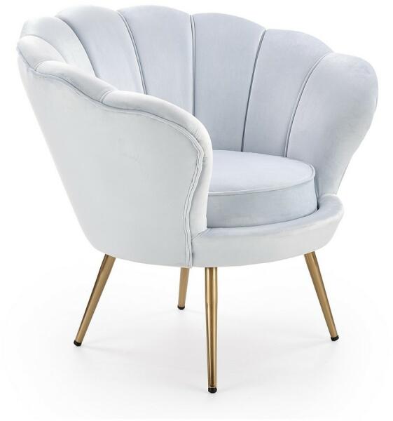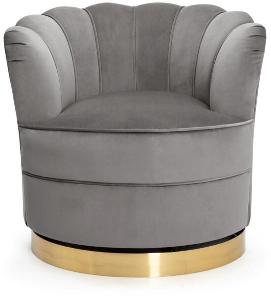 Elegáns SISI forgó fotel kagyló formájú kialakítással, puha szürke bársony kárpitozással és luxus arany talp díszítéssel. A 360 fokos forgó mechanizmus és az ergonomikus kialakítás tökéletes kényelmet biztosít. Luxus és kényelem tökéletes harmóniábanA SISI forgó fotel a modern elegancia és a klasszikus design találkozása. A kagyló formájú háttámla és az ível