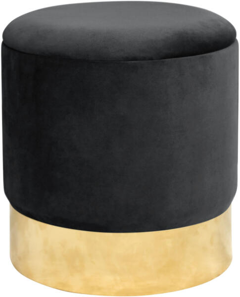 Elegáns tárolós puff fekete bársony kárpitozással és arany színű fém alappal. Tökéletes kombinációja a funkcionalitásnak és a modern dizájnnak, beépített tárolóhellyel a praktikus használatért. Luxus és funkcionalitás tökéletes összhangbanEz a modern tárolós puff a legújabb lakberendezési trendeket követi, ötvözve a praktikumot az eleganciával. A puha, fekete b