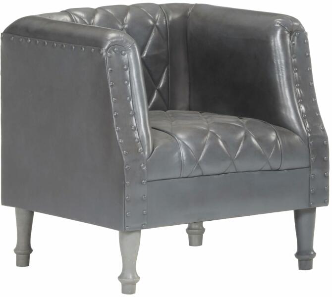 Valódi bőr kagylószékünk luxust és vintage stílust visz otthonába. A kanapészék valódi kecskebőrből készült, így ülőfelülete hihetetlenül puha. A nagyobb kényelem érdekében vastagon párnázott. A lábai tömör mangófából készültek, így a szék stabil és masszív. Lazítson egy jót valódi bőrkárpitozású székünkben ülve!Színe: szürkeAnyaga: valódi kecskeb