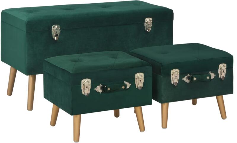 A sokoldalúan használható, praktikus tárolóülőke barátságos megjelenésével bármilyen lakberendezési stílushoz illik. Ezek az ülőkék bársonnyal vannak kárpitozva, kényelmességüket pedig a habszivacs párnázás biztosítja. A tömör falábak nem csak stabillá és tartóssá teszik a lábzsámolyokat, de elegáns bájt is kölcsönöznek nekik. Az ülőfelület alatti tárol