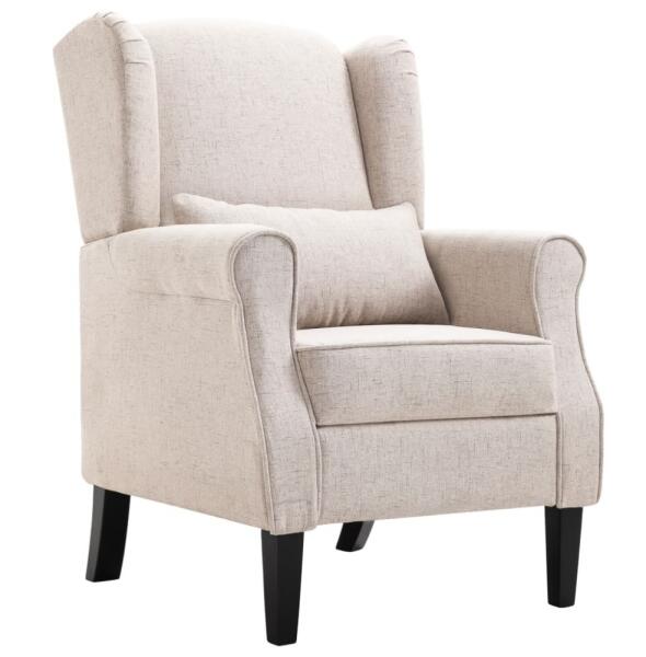 Színe: bézs Anyaga: szövetanyag + fa és furnérlemez váz + tömör tölgyfa lábak Teljes méret: 68 x 73 x 101 cm (Ho x Szé x Ma) Ülőfelület szélessége: 45,5 cm Ülőfelület mélysége: 48 cm Háttámla magassága: 62 cm Karfa magassága: 19 cm Ülőfelület magassága a talajtól: 48,5 cm Karfa magassága a talajtól: 67,5 cm Ülőfelület vastagsága: 14 cm A mellékelt hátpárna m