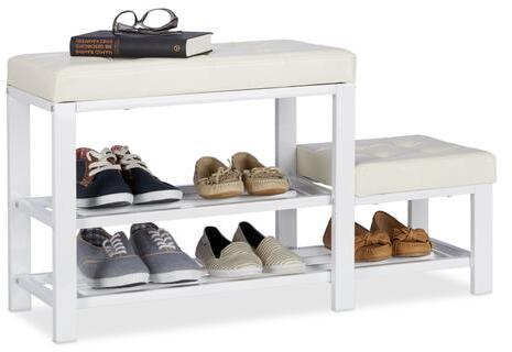 Pad és Cipőtároló Teljes Mérete: 50 x 90,5 x 30,5 cm (Ma x Szé x Mé) Polc mérete: 52 x 24,5 cmSúlya kb. 8,6 kg Anyaga: Műbőr, Fém, MDF Szín: Fehér