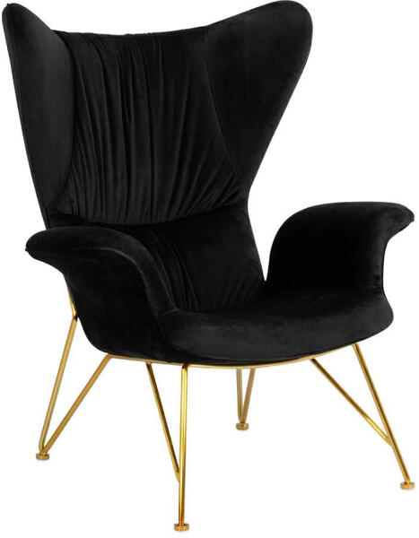 Elegáns Shrimp Velvet fotel puha, fekete bársony kárpitozással és stílusos arany lábakkal. A kényelmes, széles ülőfelület és a magas háttámla tökéletes kombinációja a luxus és a kényelem kedvelőinek. Időtlen elegancia modern köntösbenA Shrimp Velvet fotel a klasszikus füles fotel modern újragondolása. A fekete bársony kárpitozás és az arany színű lábak kontrasztj