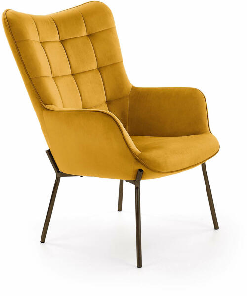 Dobja fel az otthonát ezzel a gyönyörű CASTEL fotellel. A precízen kidolgozott részletek és a minőségi anyagok garantálják, hogy tökéletes kiegészítő lesz minden szobában. Az egyedi fotel mustársárga színű bársonyos szövettel kárpitozott. A bársonyos szövetekre jellemző, hogy ha az ember végighúzza rajtuk a kezét megváltozik valamelyest a színűk a szálak átrendez