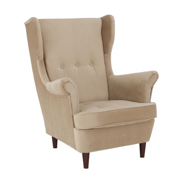 Anyag: szövet Kronos 35/fa A szövet kopásállósága: 60 000 Martindale Szín: bézs-arany/dió Fotel mérete (SzéxMéxMa): 82x92x104 cm Ülőrész magassága: 40 cm Ülőrész mélysége: 58 cm Háttámla magassága: 73 cm Magasság a talajtól a kartámaszig: 65 cm Ülés szélessége: 53 cm Alsórész magassága a talajtól: 13 cm Fa lábak A lábak színe különbözhet Szállítás széts