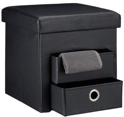 NADJA Összecsukható Puff, Ülőke Külső mérete: 38 x 38 x 38 cm (Ma x Szé x Mé) Összecsukott mérete: 6 x 38 x 38 cm (Ma x Szé x Mé) Kivehető, összecsukható + tárolórekeszekkel. Tárolórekeszek (17 L űrtartalom) Tárolórekeszek mérete: 10 x 27 x 34 cm (Ma x Szé x Mé) Súly: 4 kg Anyaga: Műbőr Szín: Fekete