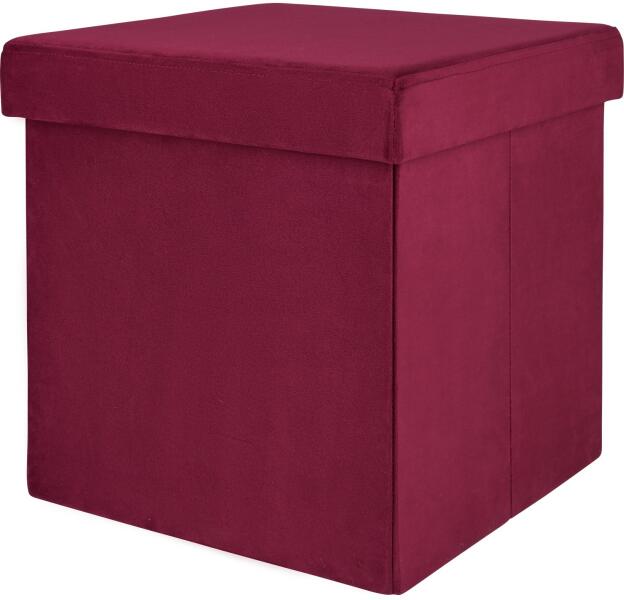 A Blush Bordeaux szék dekoratív ülőalkalmatosságot kínál beltérben, és ideálisan használható kis helyiségekben. Mérete 38 cm x 38 cm x 38 cm (Ma x Szé x Mé). Ez az ülőbútor MDF-ből készül, bevonata pedig bársony és PE. Kialakítását a burgundi vörös nemes bársony megjelenés határozza meg. A szék kinyitható, és hasznos rakodóhelyet rejt magában például otthoni