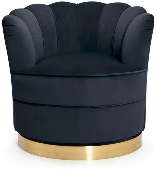 Elegáns SISI forgó fotel kagylóhéj kialakítással, luxus tengerészkék kárpitozással és arany színű talppal. A 360 fokos forgómechanizmus és a kényelmes párnázás tökéletes kombinációja a modern otthonokban. Luxus és kényelem tökéletes harmóniábanA SISI forgó fotel egy igazi ékszerdoboz, amely ötvözi a klasszikus art deco stílust a modern funkcionalitással. A kagyl