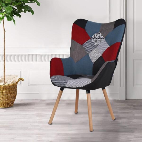 Kényelmes, stílusos FRODO fotel patchwork kivitelben A dizájnos FRODO relaxációs fotel egyszerűséget, eleganciát és praktikusságot kínál. A fotel nagyon mutatós a belső térben, ahol szívesen tölti el a szabadidejét és élvezi a pihenés pillanatait. A nagy háttámlának és a kényelmes karfáknak köszönhetően maximális kényelmet biztosít. A fotel váza fából, a huzata