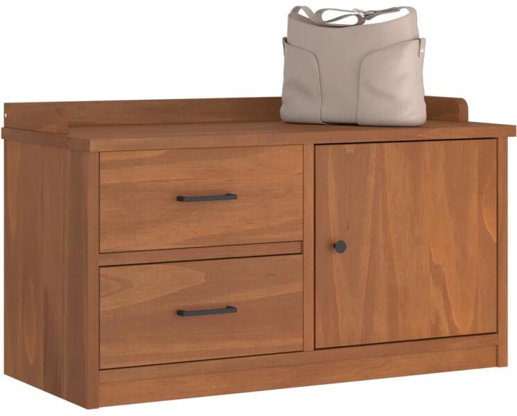 Teremtsen meleg és barátságos környezetet közvetlenül az ajtaja mellett ezzel a fából készült előszobapaddal! Robusztus és stabil anyag: A tömör fenyőfa az erősségéről és tartósságáról ismert. Egyenes erezete és jellegzetes csomói hozzájárulnak rusztikus varázsához. Akácfa megjelenés: A tömör fenyőfából készült, akácfa kivitelű előszobai ülőke az anyag t