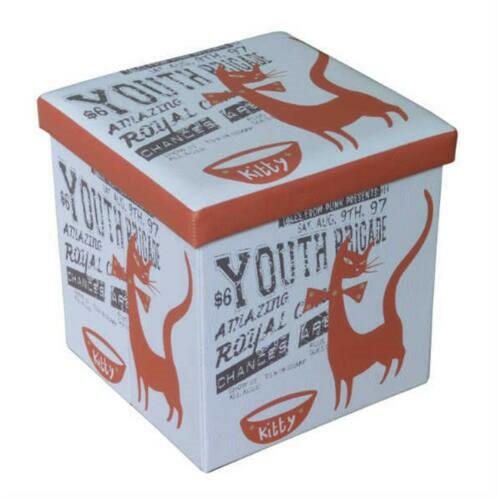 Design tárolós ülőke 38 x 38 cm, Kitty Kényelmes ülőalkalmatosság, ami egyben tároló is. Könnyen összecsukható, ezért nagyon praktikus. Vidám mintázataival feldobja a helység hangulatát. Anyag: Fa és műbőr Összecsukható: