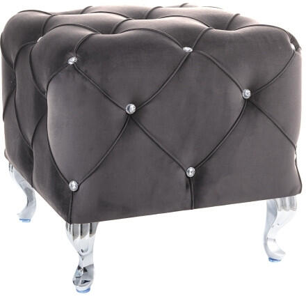Elegáns, kristálygombokkal díszített négyzetes puff bársony kárpitozással és stílusos ezüst színű fémlábakkal. Tökéletes kiegészítő bármely modern vagy klasszikus enteriőrhöz. Luxus és kényelem egy elegáns bútordarabbanA Hestia puff egy gyönyörű, kézzel készített bútordarab, amely ötvözi a klasszikus és modern dizájnt. A szürke bársony kárpitozás és a 29