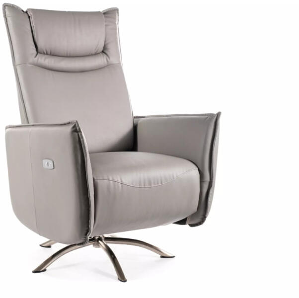 Modern, elektromosan állítható relax fotel prémium műbőr kárpitozással és 360°-ban forgatható szálcsiszolt acél talppal. Beépített USB-porttal rendelkezik a kényelmes töltéshez. Maximális kényelem és modern technológia találkozásaA Notos elektromos relax fotel a modern dizájn és a funkcionalitás tökéletes ötvözete. A szürke műbőr kárpitozású fotel elektromos ve