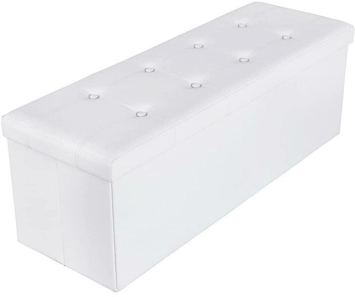 összecsukható tároló oszmán pad, tárolóláda, lábtartó, dohányzóasztal, párnázott ülés, műbőr Többcélú: Helyezze ezt a tárolóládát a hálószobába ágyvégi padként, a kanapé elé a nappaliban lábtartóként vagy a folyosón cipőpadként – Öné a végső szó! Nagy szilárdság: Ennek a tárolóládának a kerete minőségi MDF-ből készült, amely elég erős ahho