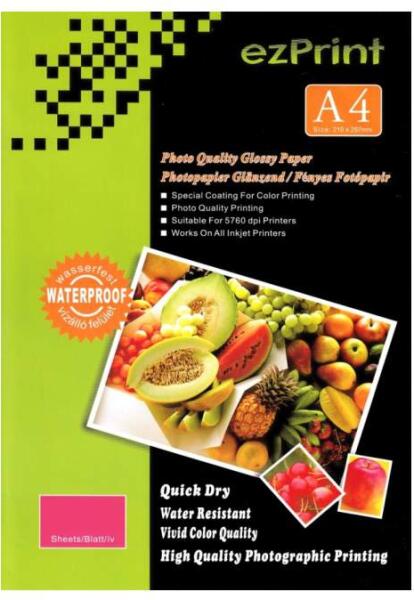 ezPrint Fotópapír A4 100lap 120g matt Méret: A4 Tömeg: 120 g/m2 Felület: matt Kiszerelés: 100 lap Azonnal száradó fotópapír vízálló felület