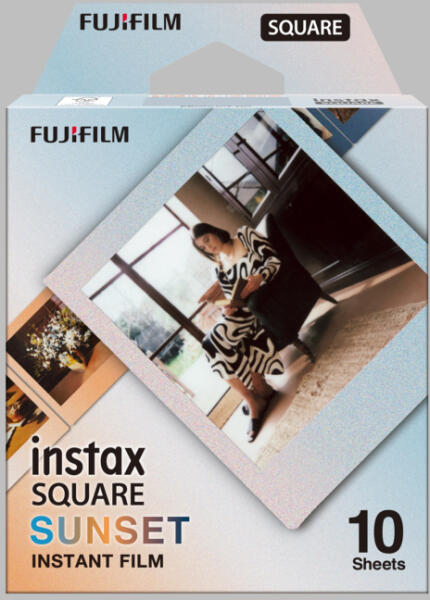 A Fujifilm legújabb SUNSET , 1:1 képarányú filmje a Square széria fényképezőgépeivel és nyomtatójával kompatibilis. A Square film a továbbfejlesztett és egyedi antioxidáns technológiának köszönhetően színteltebb és hosszú éveken át tartós fényképeket garantál. Fujifilm Instax SQUARE SUNSET film legfőbb jellemzők: Instant színes fényes film színátmenetes, a naplem