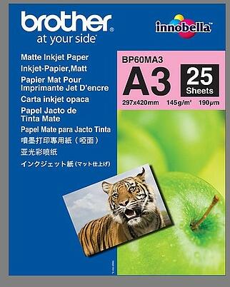 Úgy tervezték, hogy tökéletes harmóniában dolgozzon a Brother készülékével. Az eredeti BP60MA3 matt, A3 méretű tintasugaras papír biztosítja, hogy nyomatai jól olvashatóak, élesek és lenyűgöző megjelenésűek lesznek. Kiemelt tulajdonságok A csomag 25 lapot tartalmaz Kimagasló minőségű Brother kellékek Garantálja, hogy a nyomatok a legjobb minőségűek legyenek
