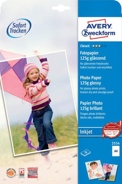Papír mérete: 210 x 297 mm Egyoldalas , hagyományos fényes tintasugaras fotópapír. Nyomtatható: tintasugaras nyomtatókban. Papír mérete: 210 x 297 mm (A4) Papír grammsúlya: 125 g/nm Ajánlott maximális felbontás: 5760 dpi Papír színe: fehér Csomag tartalma: 20 darab fotópapír Termék megnevezése: Avery Zweckform hagyományos 125 g-os fényes tintasugaras fotópapír - 210 x 297