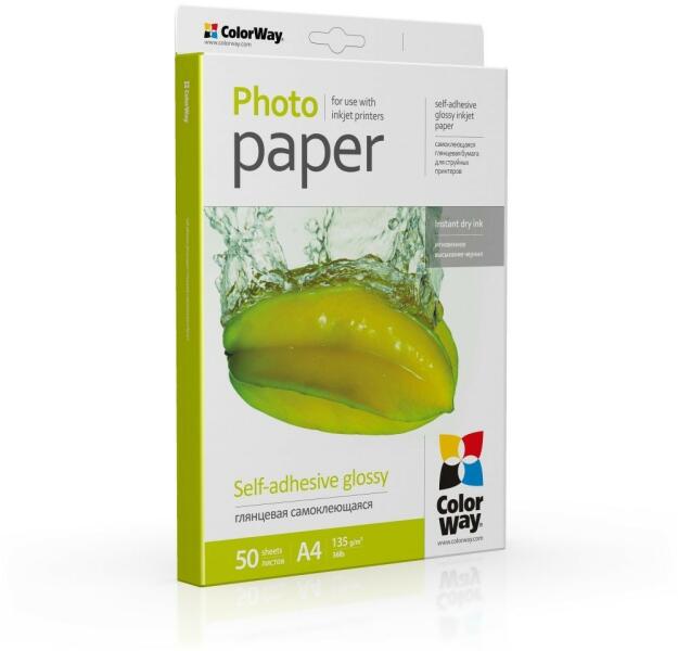 Öntapadós, fényes felületű fotopapír tintasugaras nyomtatókhoz, A4-es méretben. Tulajdonságok Kompatibilitás: tintasugaras nyomtatók Fajlagos tömeg: 135 g/m2 Típus: Fényes Méret: A4 Felbontás: 2880 dpi Lap/csomag: 50 Nyomtathatóság: Egyoldalas Speciális jellemző: öntapadós