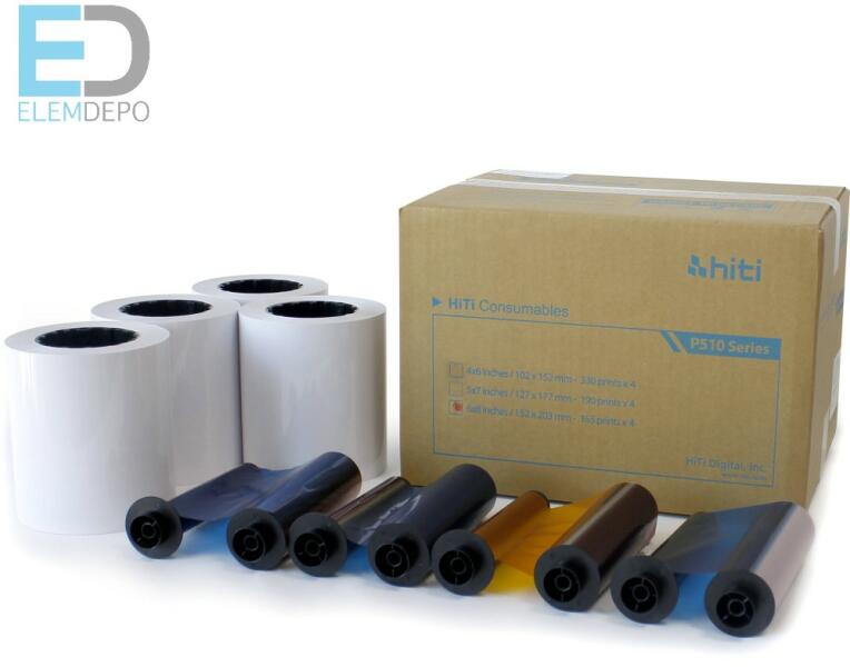 gyártó: HITI Típus: HITI P510 méret: 6" x 8" 15cm x 20cm P510 nyomtató kellék Méret: 15cm x 20,3cm 6" x 8" tartalom: 4 tekercs (4 x 165 kép ) 1 doboz = 4 tekercs 1 doboz / ár Hiti Printer 510K-hoz 15 x 20,3 cm( 6 x 9 Inch) 4 x 165 print / doboz Designed for use with the P510 Photo Printer, this 6 x 8" Print Kit from HiTi comes with four printer cartridges and four rolls of 165 sheet, 6 x