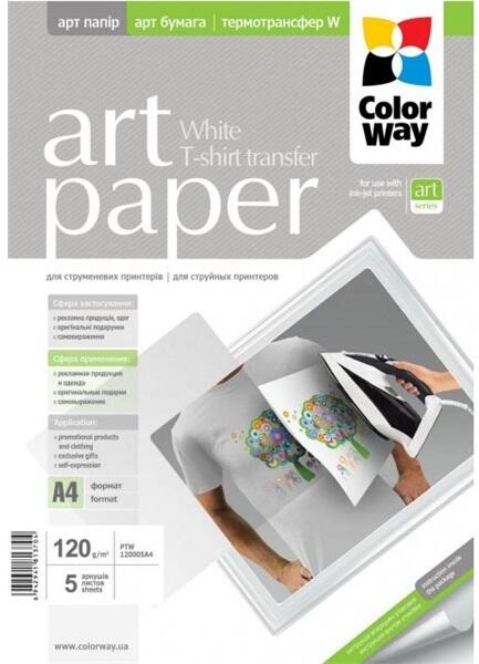 ColorWay fotópapír Fajlagos tömeg: 120 g/m2 Fényesség: pólóra vasalható, fehér Formátum: A4 Kétoldalas nyomtathatóság: Nem lap/csomag: 5db Nyomtatási technológia: Tintasugaras Garancia 12 hónap