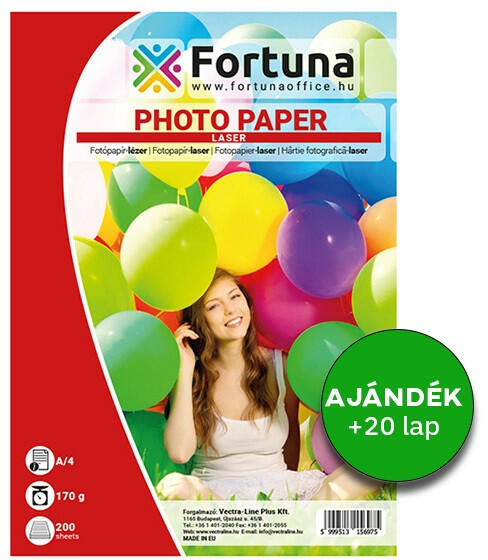 Fotópapír FORTUNA A/4 laser fényes 170 gr 200 íves Méret: A/4. Jellemzők: félfényes. Kiszerelés: 200 ív/cs.