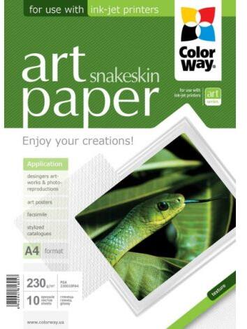 Lesklý fotopapier s textúrou hadej kože pre atramentovú tlač rozmeru A4. V balení je 10 ks kvalitného fotopapiera s hmotnosťou 230g / m2.