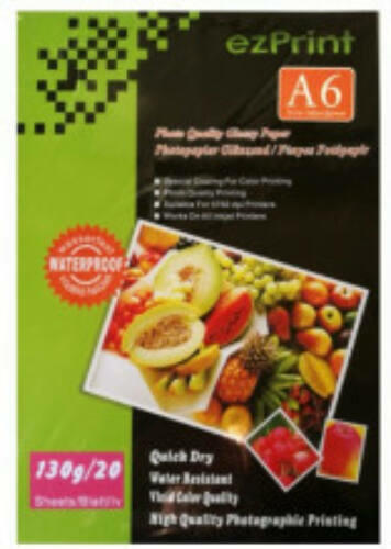 EzPrint Fotópapír 10x15cm 20 lap 130g fényes Leírás Méret: A6, 10x15cm Tömeg: 130 g/m2 Felület: fényes Kiszerelés: 20 lap Azonnal száradó fotópapír vízálló felület