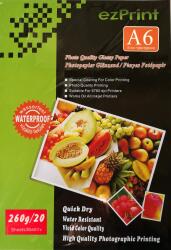 Méret: A6, 10x15cm Tömeg: 260 g/m2 Felület: fényes Kiszerelés: 20 lap Azonnal száradó fotópapír vízálló felület