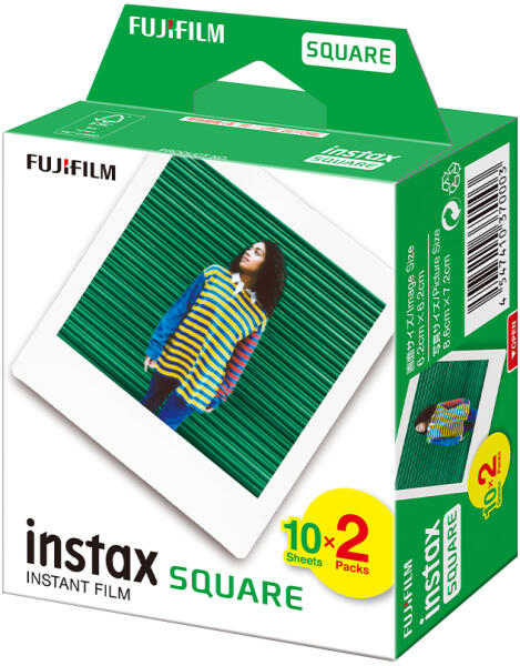 Dupla kiszerelésű Instax, négyzetes alakú, 1:1-es oldalarányú fotópapír SQURE tipusú Instax készülékekhez. Fujifilm Instax Square Color Glossy film legfontosabb tulajdonságai: Instant színes fényes film 10db / csomag 86x72mm film méret – 62x62mm képméret fehér keret a kép körül ISO 800 érzékenység Kompatibilis eszközök: Fujifilm Instax SQUARE SQ1 , SQ6, SQ10, SQ20 fén