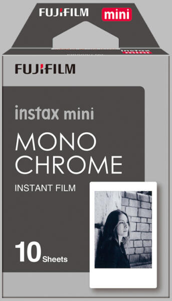 Fujifilm instax mini Monochrome film, fekete-fehér instant film, instax mini-t használó fényképezőgépekhez és fotónyomtatókhoz.