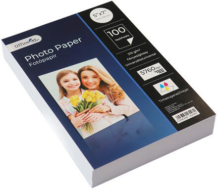 Minőségi fotópapír a tökéletes fénykép elkészítéséhez. Az OfficeArt fotópapír segítségével könnyű és egyszerű módon nyomtathat fényes fotókat az otthonában. Fényes felülettel rendelkezik. Tintasugaras nyomtató segítségével nyomtatható a felülete. Papírsúlya: 210 g/m2 Mérete: 127x178 mm Csomag mérete: 100 lap/csomag