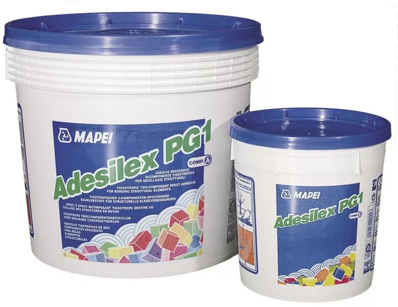 Betonelemek, természetes kő-, habarcs és téglaszerkezetek szerkezeti javítására, ragasztására és megerősítésére. Az Adesilex PG1 kétkomponensű epoxigyanta bázisú termék, amely szilárdulás-gyorsítókat, finomszemcséjű osztályozott adalékanyagokat és különleges adalékszereket is tartalmaz. Az Adesilex PG1 vegyi reakció következtében néhány óra alatt, zsugorodás n
