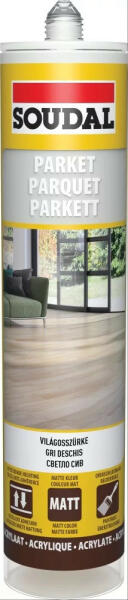Kíváló minőségű akril bázisú, rugalmas tömítőanyag parketta vagy laminált padló illesztéseihez. Kíváló minőségű akril bázisú, rugalmas tömítőanyag parketta vagy laminált padló illesztéseihez. A leggyakrabban használt parkettaszínekhez igazított színválaszték. Kiváló tapadás porózus felületekre, szagtalan, oldószermentes. Kikeményedés után festhető és la