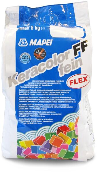 A MAPEI Keracolor FF Flex fugázó fokozott terhelhetőségű, polimerekkel módosított, DropEffect® technológiával készült vízlepergető tulajdonságú, cementkötésű fugázóhabarcs 6 mm fugaszélességig. Alkalmazási területek: A Keracolor FF Flex-et Fugolastic-kal keverve javulnak a kikeményedett fuga jellemzői, amely így különösen nagy igénybevételnek kitett környezetben i