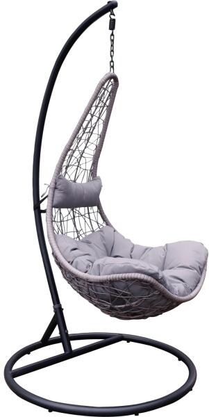 Ez a függőfotel kényelmes ülőalkalmatosság a szabadtéri pihenéshez. A hintázó mozdulatok nyugtató hatásúak, és relaxálásra invitálnak. Átmérője 105 cm, magassága 200 cm. Az ülés szélessége 89 cm, mélysége 80 cm. A fotel rattanból készült, robusztus és tartós acélvázzal rendelkezik. A fekete és az ekrü színkombinációnak köszönhetően bármilyen kültéri fel