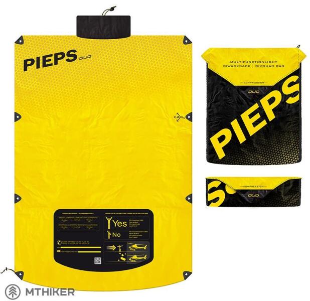 PIEPS Bivy Duo Alien Bivouac táska A Bivy Bag Duo Alien egy többfunkciós szél- és vízálló táska 2 személyes, és a PIEPS Bivy Duo-val ellentétben két lyukkal rendelkezik a fejek számára. A táska könnyen csomagolható akár kisebb tekercsbe, akár téglalap alakú kiszerelésbe. A táskát használhatod napvédő ponyvaként, ülőpárnaként vagy esőben poncsóként. A Bivy Duo Al