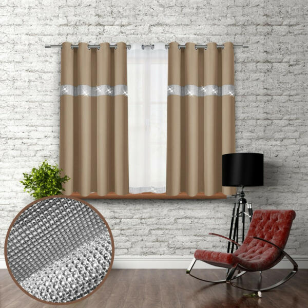 100%polieszter, 140cm széles, 160cm magas, fény és hőzáró hatás, 90-95%-os sötétítésre alkalmas. Kizárhatjuk a nyári tűző napsugárzást, és valamennyi hőt, télen a hőszigetelést is javítja, minden helyiségben megfelelő sötétséget érhetjük el lágy szép esésű anyag, tetején ráncolóval, mellyel a kívánt méretre behúzható, a függöny rendelés után készül,