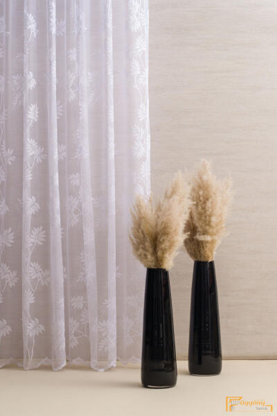 Nyírt mintás (shearly) függöny, amely gyártása során a jacquard beszövéssel készült motívomok fonalszálait körülvágják, így a minták széle különleges, puha tapintású lesz a kelme egyik oldalán. Kétoldalas fényáteresztő függöny. A függönyt az áruházban az Ön által kívánt méretre vágják.